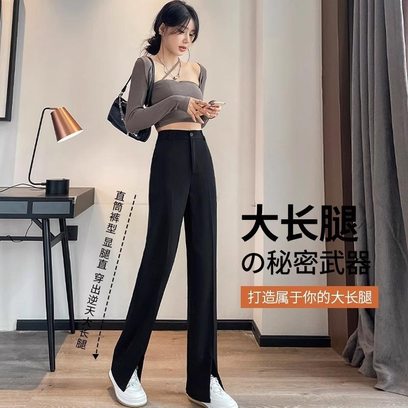 Black Narrow Suit Pants Women's Pendant Feeling New Spring and Summer High and Thin Split Straight Wide-leg Pants