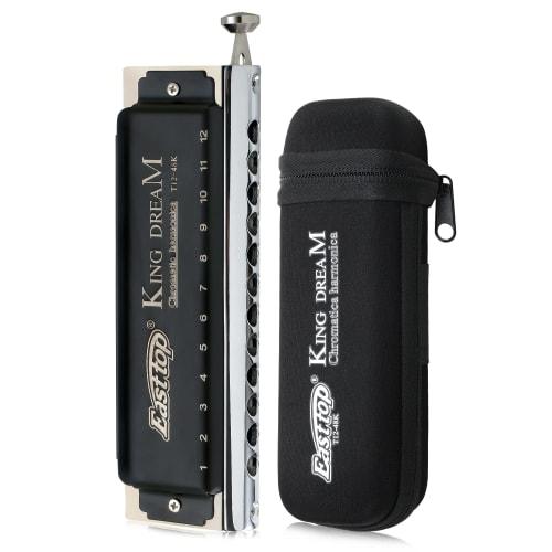 East Top 12-Hole Chromatic Harmonica In C Key, 48 Tones, Airtight Construction, Excellent Tone, Durable, Stainless Steel Cover, Canvas Case, Cleaning