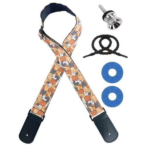 Tengyokudo Guitar Strap, Strap Pins, Strap Locks for Guitars, Bass, Electric Guitars, and Acoustic Guitars (Cat Style)