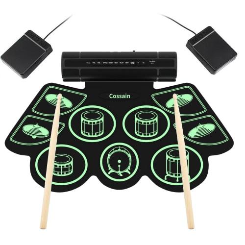Foldable, Compact Electronic Drum Set for Beginners and Kids. Includes 9 Pads, Hi-hat, Ride Cymbal, Two Crash Cymbals, Snare Drum, Bass Drum, Floor Dr