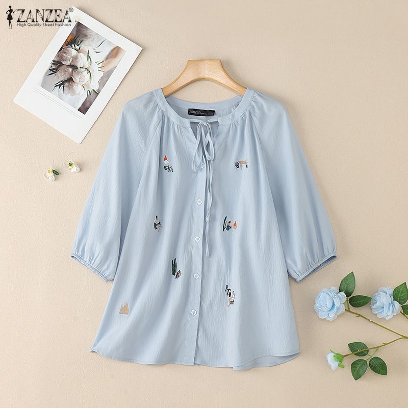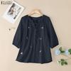 ZANZEA Women Casual Round Neck Summer 3/4 Sleeve Buttons Print Blouse