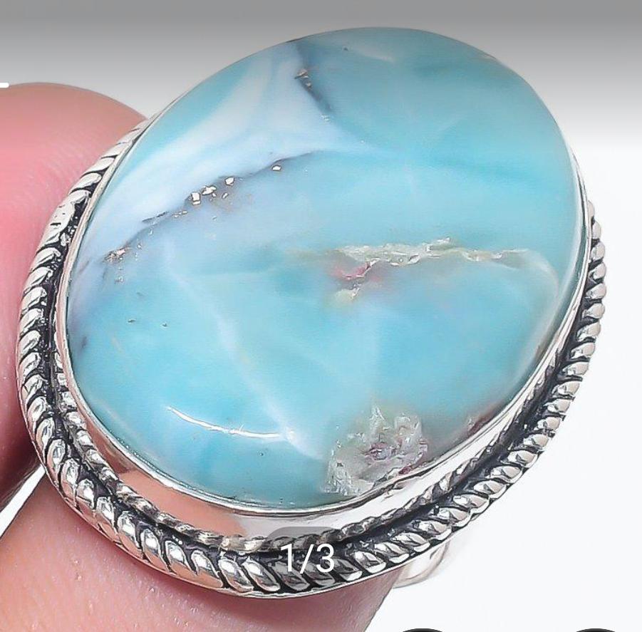Natural Larimar Gemstone Handmade 925 Sterling Silver Jewelry Ring Size 7 U7p13