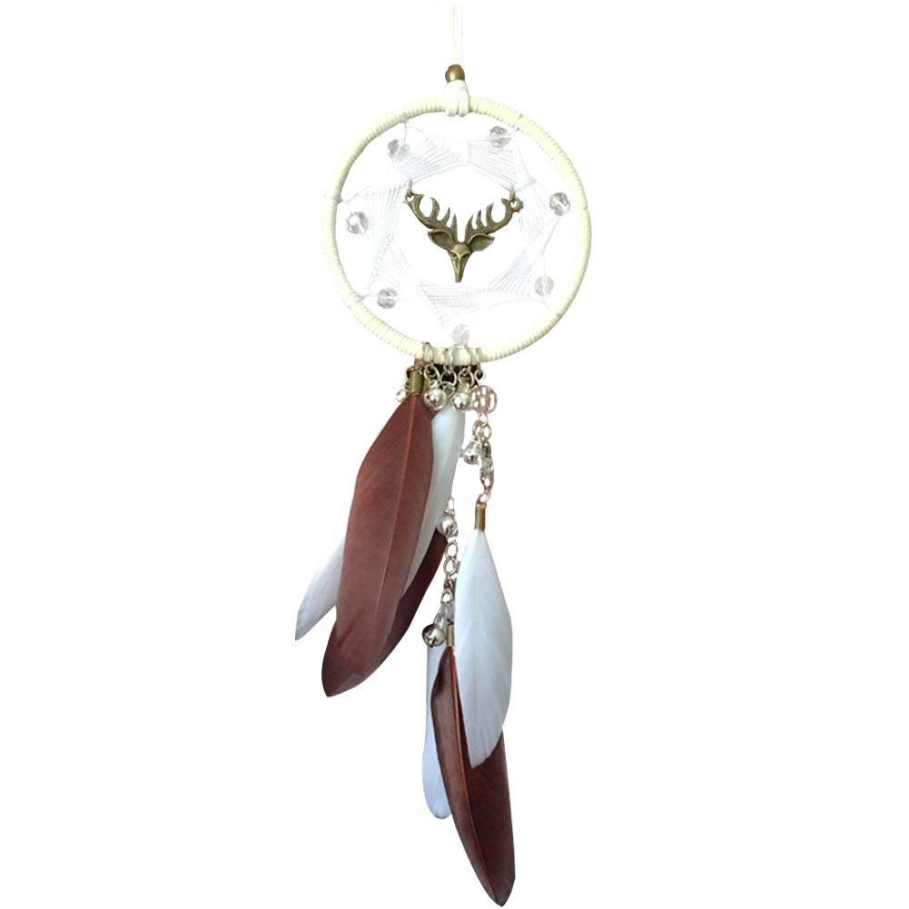 Design: The deer ornament is double sided, and the mesh side has a large diameter and is woven evenly. High quality positioning beads, the circle is 7 equals and the wire is wrapped uniformly to form a cantagram. With another mini dream catcher, the metal bell and decoration will not , the sound is clear and noise