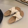 Retro Woven White Thick-soled One-word Slippers Women's Summer Wear 2025 New Models with Skirts To Increase Height and Cool Slippers