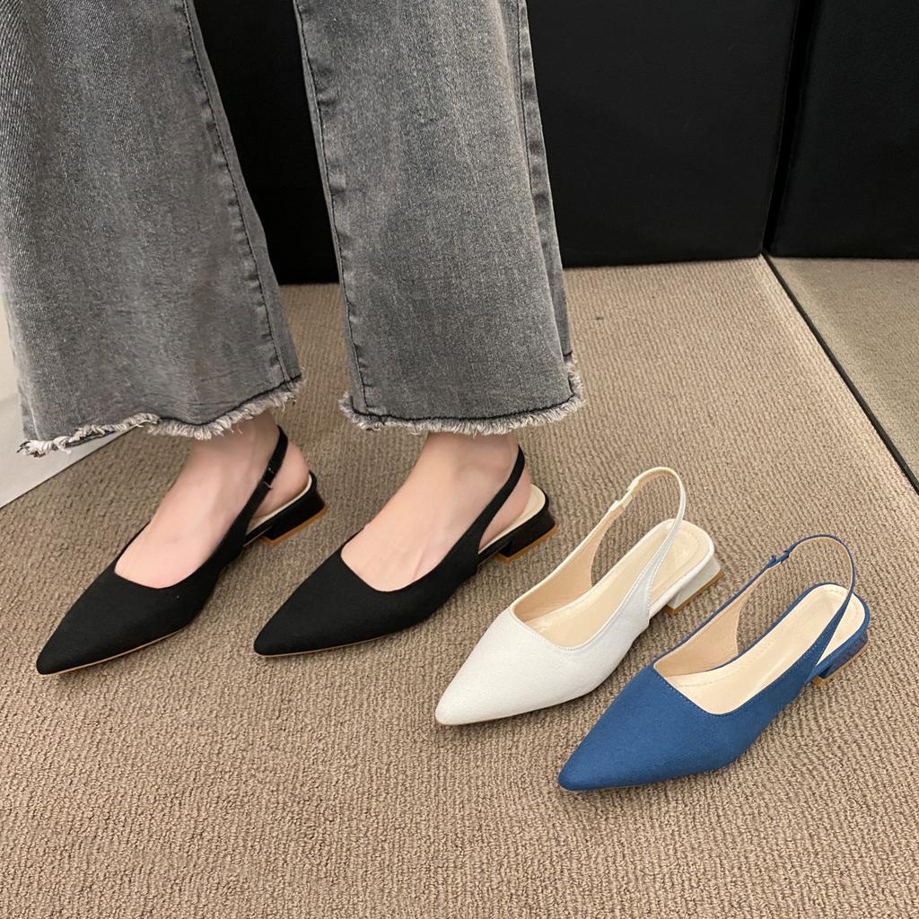 French Low-heeled Bag Head Sandals Women's Spring and Autumn 2025 New Thick-heeled Single Shoes Temperament Socialite Pointed High Heels