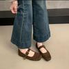 Retro Fashionable Rivet Square Head 2025 Autumn New One-word Buckle Shallow Mouth Huge Good-looking Single Shoes Niche Flat Bottom Mary