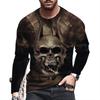 3D Skull Printed Top Fashionable Casual Long Sleeved Men's T-shirts - Soft Medium Stretch Polyester Fabric Spring and Autumn Relaxed Fit Clothing