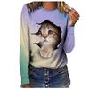 Round Neck Cat Pattern 3D Printed Casual Long Sleeved Women's T-shirts - Soft Medium Stretch Polyester Fabric Spring and Autumn Relaxed Fit Clothing