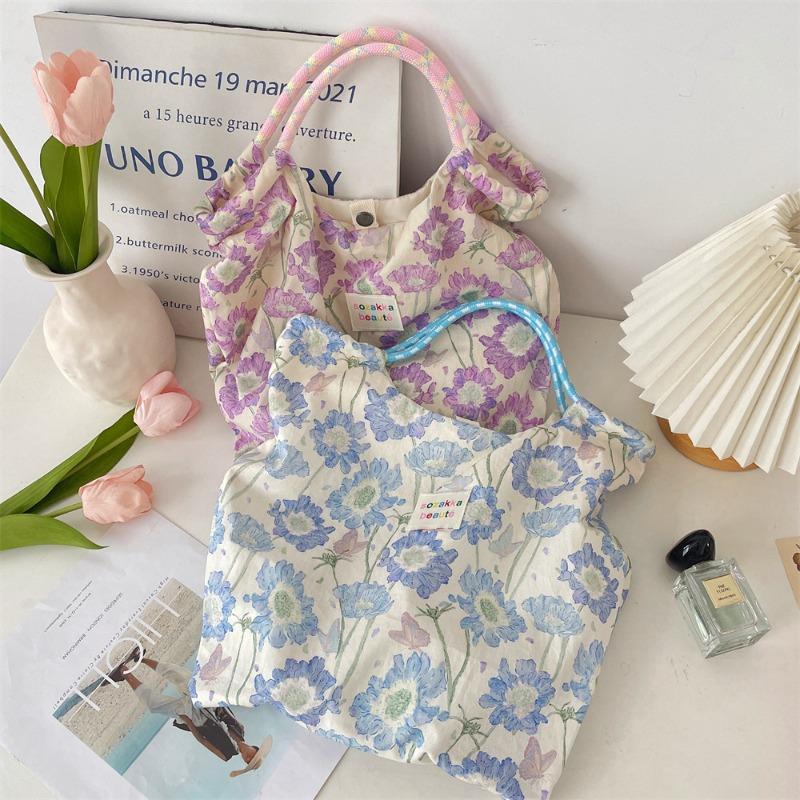 Pastoral Floral Lazy Wind Handbag Shoulder Bag Student Class Tote Bag Large Capacity Handbag