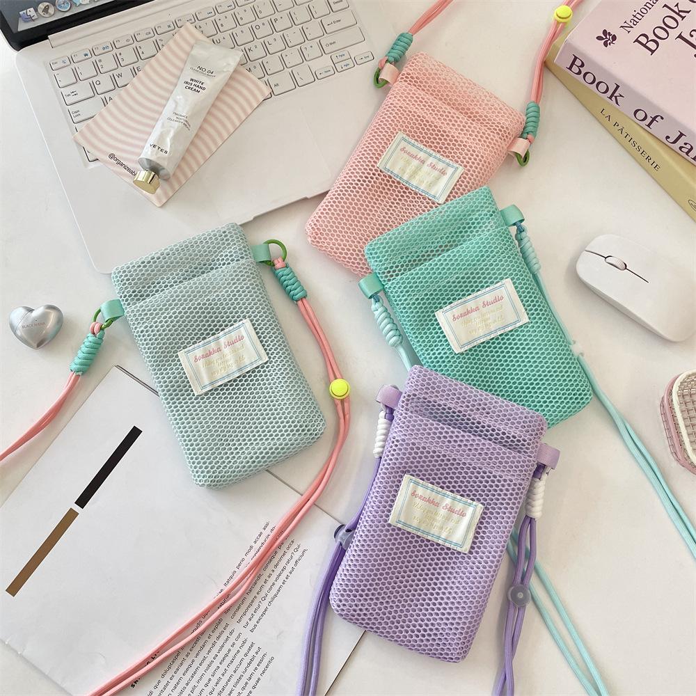 Small Fresh Mesh Mobile Phone Storage Bag Women's New Summer Sweet Lanyard Mobile Phone Bag Messenger Bag