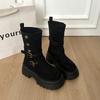 Black Retro Thick Heel Platform Martin Boots Women's 2025 New Spring and Autumn British Style Thin and Heightened Medium Boots