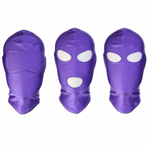 CZ-ING Full Face Mask, Stretch, 3-Hole, Blindfold, Open Mouth, Full Head Mask, Breathable, Elastic, SM, 3-Pack (Purple)