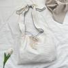 1 Texture Pleated Polka Dot Shoulder Messenger Bag Fresh Versatile Canvas Bag Women's Adjustable Lace-up Cloth Bag