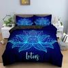 Galaxy Lotus King Size Full Twin Duvet Cover Blue Flower Moon Bedding Set For Teens Adults Bohemian Floral 2/3pcs Quilt Cover