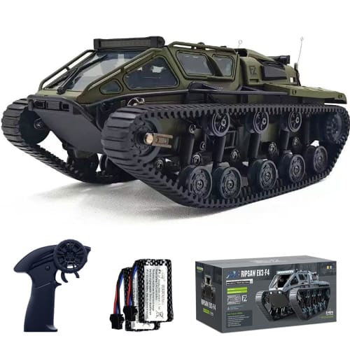 - Realistic Appearance Caterpillar Radio Controlled 27cm Drift Tank Radio Controlled Car Realistic Military Design High Performance Driving.Adopting an impressive tank-like design, the carefully reproduced details create an authentic military style.Caterpillars that mimic the structure of an actual vehicle allow it to flexibly handle complex terrain.Equipped with a powerful motor, it can run smoothly in all situations, including indoors, outdoors, on the lawn, on gravel roads, and asphalt.Powerful design that allows you to easily climb 30° slopes.Furthermore, it uses a highly durable alloy guide wheel, so you can enjoy it for a long time with peace of mind.This car, which allows you to enjoy drifting, is also the perfect gift for children, and is sure to get them hooked!