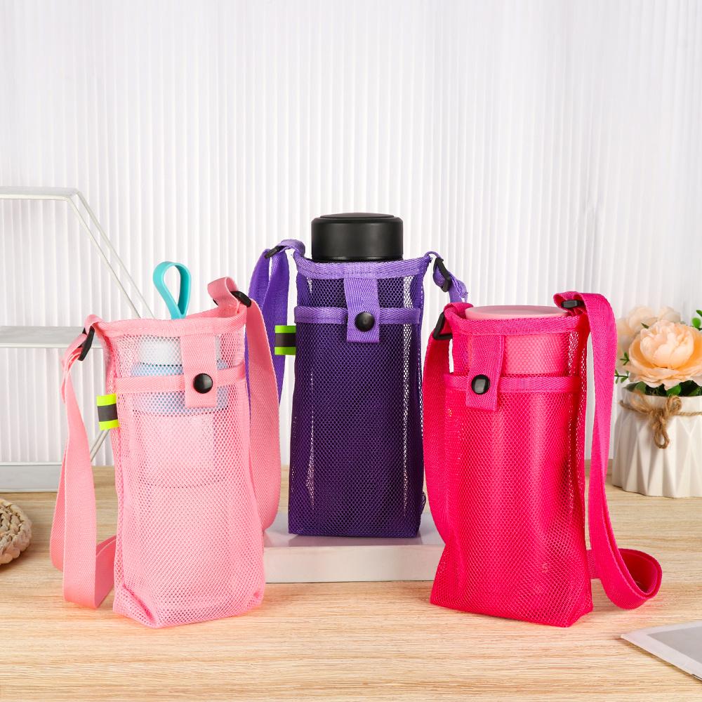 Portable Sport Water Bottle Cover with Strap Cup Sleeve Mesh Cup Pouch Mobile Phone Bag Visible Bag Outdoor Camping Accessories
