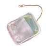 Clear storage bag with crystals clear plastic showcases collectible dolls detail while protecting them, featuring cartoon pattern for visual appeal.