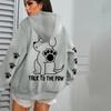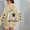 Ladies Spring Autumn Casual Hooded Long Sleeve Big Pocket Cute Puppy Printed Pullover Hoodies Sweatshirt Top