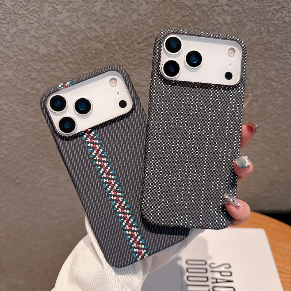 Carbon Fiber Phone Case For iPhone 11 12 13 14 15 16 17 Air Pro Max Plus Kevlar Texture Hard Plastic Shell Shockproof Protective Cover Fundas