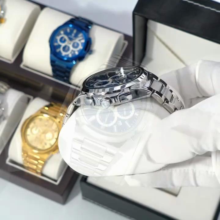 Luxury Watches For Man Multifunctional Chronograph Date Quartz Men's Clock Business Stainless Steel Gold Watchlino