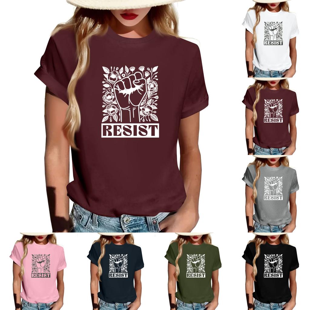 Adult Round Neck Casual Printed Short-sleeved T-shirt Top