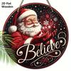 Believe Wooden Christmas Sign with Santa Claus Pattern - Navidad Round Sign for Front Door, Wall Hanging Decor - Ideal Christmas Ornament