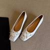 French Leopard Print Shallow Mouth Mary Jane Shoes 2025 New Sweet Square Toe Bow Slip-on Flats