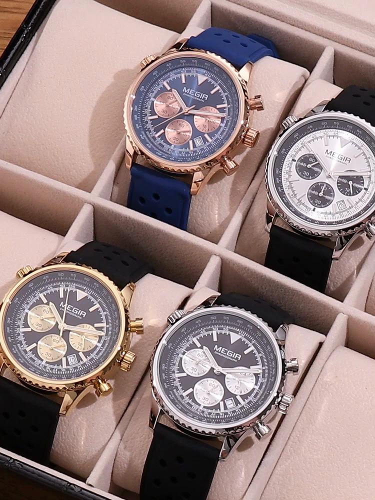 Megir Men's Watch Quartz Sport Chronograph Fashion Luminous Calendar Man Wristwatch 24-hour Silicone Strap Relogio Masculino 2236