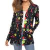 Women's Fashion Christmas Print Long-Sleeved Pocketed Slim-Fit Cardigan Coat