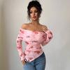 DAFIFY Women's Fashion Casual Spring Autumn Flower Pattern Print Long Sleeve One Shoulder Blouses & Shirts