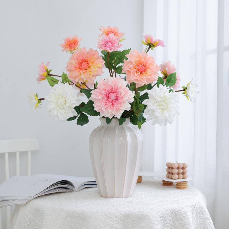 Artificial Wet Feeling Single Dahlia Artificial Flower Home Living Room Decoration Valentine'S Day Wedding Party Decoration