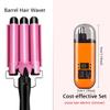 Triple Barrel Hair Waver - Reversible Big & Small Wave Styles, EU Plug Wave Pattern Electric Hair Curler Salon Accessories Tools
