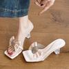 2025 New Women's Water Diamond Flower Sandals with Transparent Thick Bottom Party Dress Slippers Mules High Heels