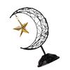 Eid Mubarak Ramadans Handheld Moon and Star Metal Hollowed Ornament Decors with Base for Muslims Islamic Party Supplies