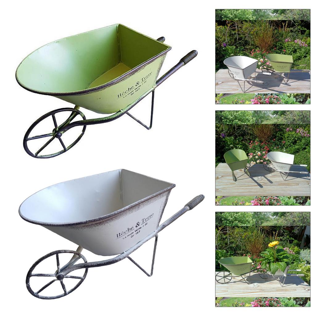 Classical Iron Art Single Wheel Cart for Garden Decors Metal Wheelbarrow Small Planter Flower Pots Plant Container Gift
