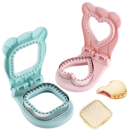 Zayookey Sandwich Mold Sealer/Cutter Press, Heart, Pink, Square, Blue, Set of 2, Bento Box Making, Bread Cutter, Small Sandwich Making, Bread Cutter,