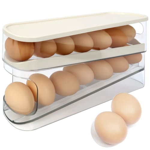 FYY Egg Storage Box, Sliding Egg Organizer, Automatic Rolling, 2-Tier Egg Case for Refrigerator, Egg Organizer, Egg Storage Case, Box, Egg Holder, Eas