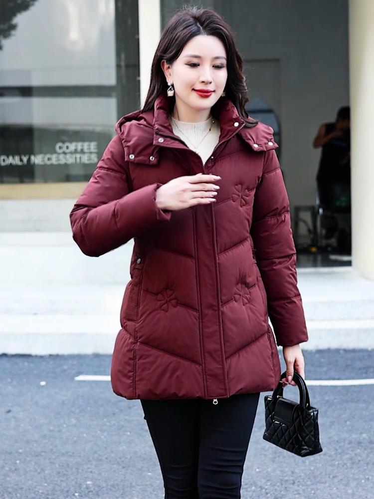 Middle Age Winter Coat Female Plus Size Parkas Hooded Elegant Thick Warm Woman Jackets