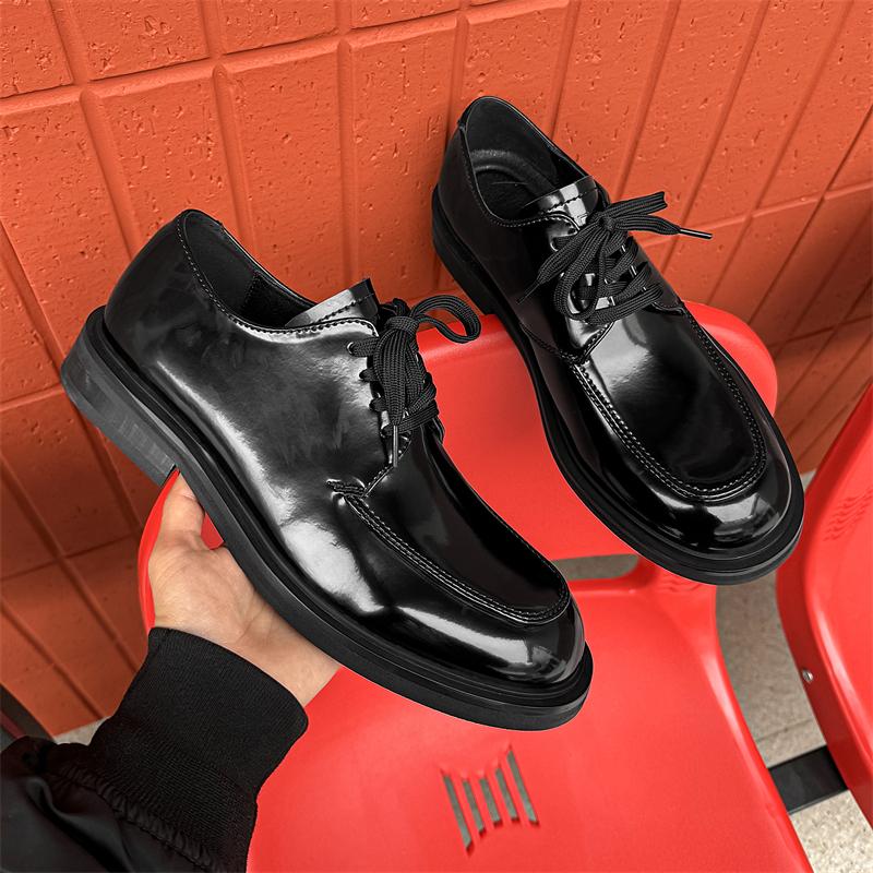 2025 Men's Fashion Business Wedding Dress Shoes Driving Black Thick Bottom Derby Shoes Trendy British Tall Men's Shoes