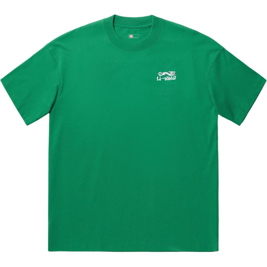 Li Ning Loose Sports Casual Simple Letter Round Neck Pullover Short Sleeve T-Shirt Unisex Tops Fresh-Green AHSUA35-1