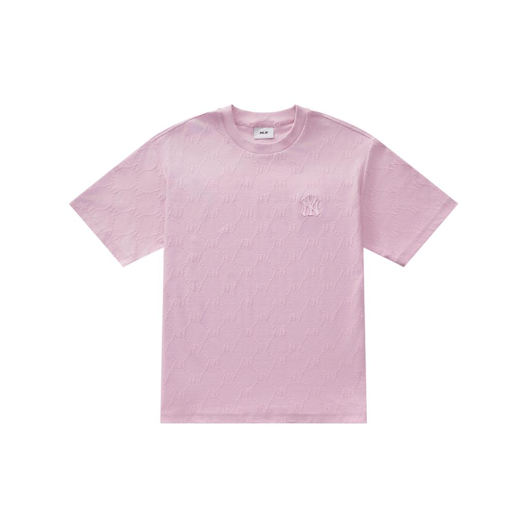 New MLB MONOGRAM Collection New York Yankees SS25 T Shirt Unisex Heather Gray Pink 3ATSM1353-50PKM