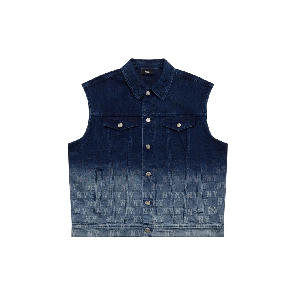 New MLB MONOGRAM Collection New York Yankees SS25 Denim Vest Unisex Dark Navy Blue 3AVTM0151-50NYD