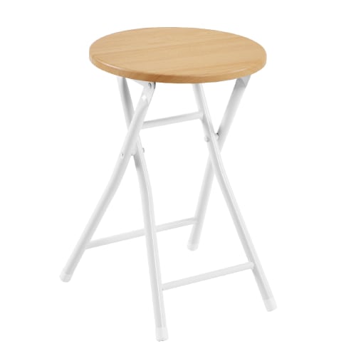 VECELO Folding Chair, Stool, Pipe Chair, Foldable, Lightweight, Slim, Portable, No Assembly Required, Height 46.5cm, Weight Capacity 100kg, Wood Grain
