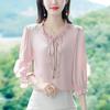 Slim Design V-neck Waist-hugging Long-sleeved Shirt 2025 Spring New Small Shirt for Women