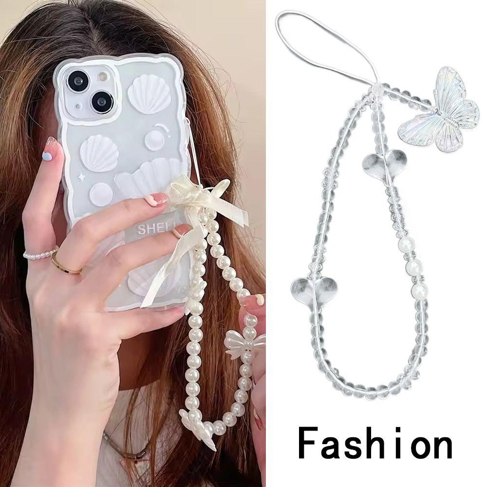 Anti-lost Pearl Bowknot Phone Lanyard Detachable Bag Camera Pendant Phone Charm Accessories