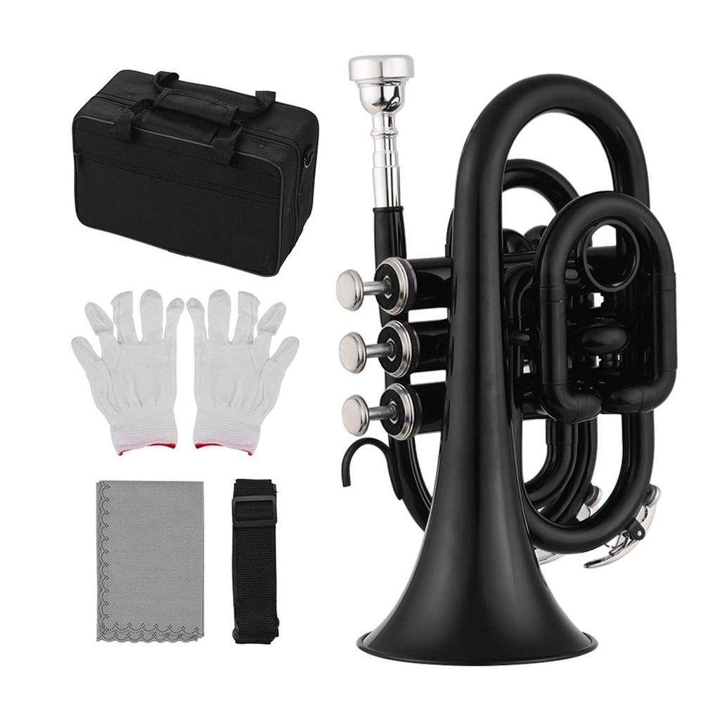 Mini Pocket Trumpet Bb Flat Brass Material Wind Instrument with Mouthpiece Gloves Cleaning Cloth Carrying Case