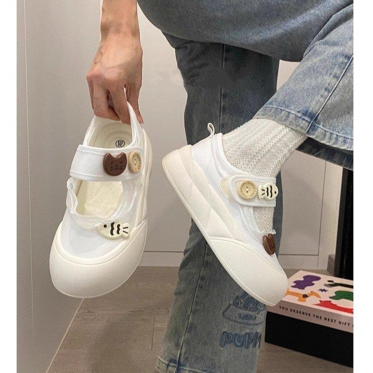 Mary Jane Hollow Canvas Shoes Children 2025 New Summer Breathable Velcro One Pedal Lazy Sports Shoes