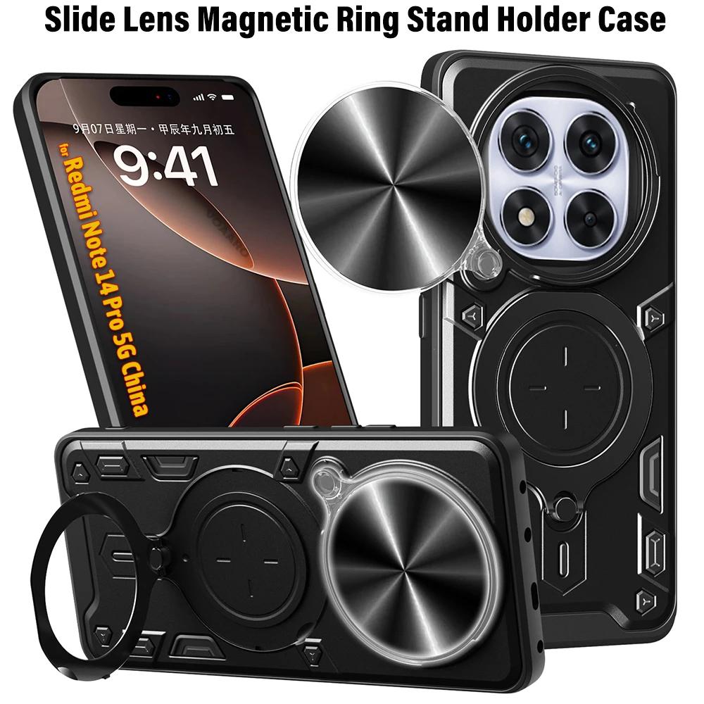 Slide Lens Armor Funda for Redmi Note 14 Pro 5G China Case for Xiaomi Redmi Note 14 Pro 5G Case Magnetic Ring Stand Cover