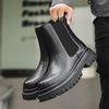 Mens Fashion Stage Nightclub High Chelsea Boots Slip-on Genuine Leather Shoes Cowboy Platform Boot Cool Long Motorcycle Botas
