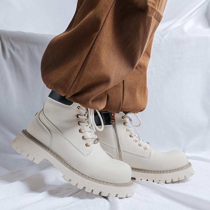 Plus Size Men Fashion Party Banquet Dress Platform Boots Black White Original Leather Shoes Cowboy Tooling Work Boot Ankle Botas